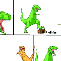Jason says: Utahraptor's confusion and voicing is PRICELESS! I smell a spin-off comic series: T-Rex's Adventures in the Land of Things That Don't Exist!