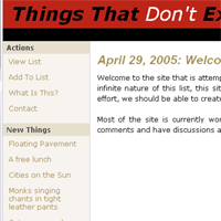 Ryan says: Amazing. Chris found a way to change this from a one-month contest into a lifelong calling. ThingsThatDontExist.com is a collaborative site where anyone can submit a thing that doesn't exist! Brilliant.