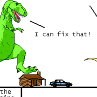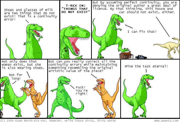 Jason says: Anachronisms! I bet T-Rex forgot that dirty words didn't exist back then either!